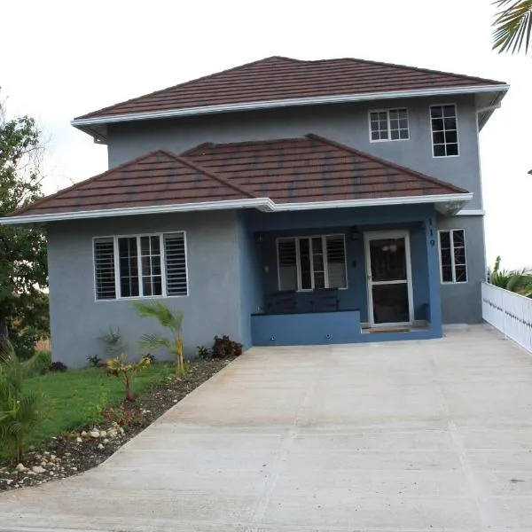 Villa in Hartland Estates, Priory Ocho Rios JA位于Priory,提供带免费WiFi的花园景客房,配有私家海滩。这家住宿距离幻想海滩(Fantasy Beach)有2.3公里,配备花园和免费私人停车位。 这家空调2卧室度假屋提供2间浴室,配备浴缸和吹风机。这家度假屋也拥有带冰箱的厨房以及2间浴室。
