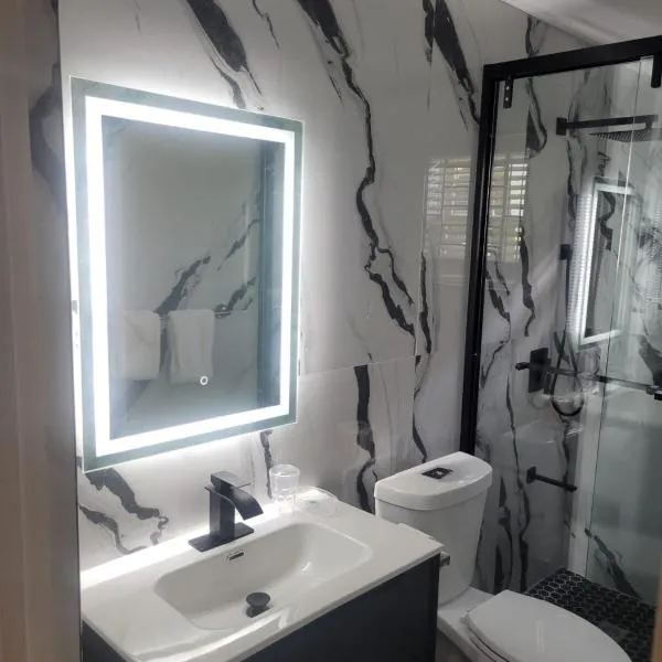 Faith moves mountains位于欧丘里欧,配备带免费WiFi的花园景客房,配备露台。这家住宿距离马米湾海滩(Mammee Bay Beach)有9分钟步行路程,提供花园和免费私人停车位。 这家1卧室公寓配备带平板电视的起居室、设施齐全的厨房和1间浴室。这家公寓也提供1间浴室。 这家公寓提供汽车租赁服务。 桑斯特国际机场距离住宿有87公里。