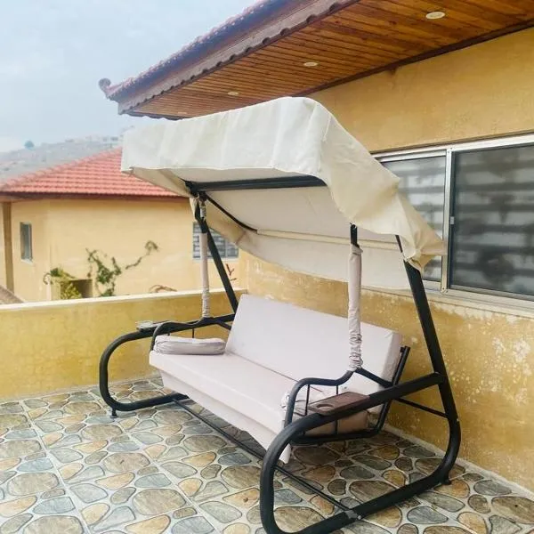 Furnished houseبيتمفروشابوفارس坐落于阿杰隆,配备免费私人停车位。 这家度假屋享有山景,为客人提供露台、休息区、卫星频道平板电视、带冰箱和烤箱的设施齐全的厨房以及带坐浴盆和拖鞋的私人浴室。部分客房拥有阳台和/或庭院。 Furnished houseبيتمفروشابوفارس配备烧烤设施和花园。 这家住宿距离阿杰隆城堡有10公里,距离杰拉什遗址有21公里。
