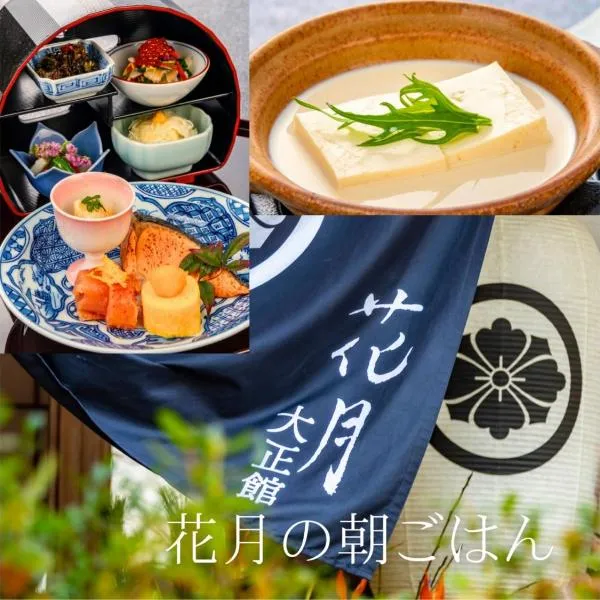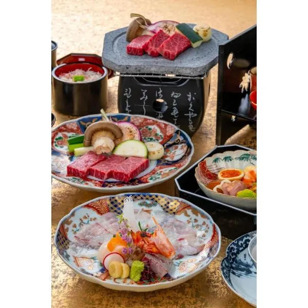It features natural hot-spring baths and multi-course Japanese meals in an elegant classical setting.