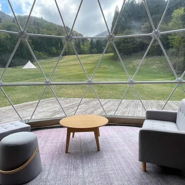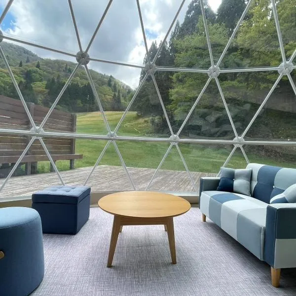 Set in Kitahiroshima in the Hiroshima region, 温泉グランピングWooods芸北 provides accommodation with free private parking, as well as access to an open-air bath. The property features mountain views.