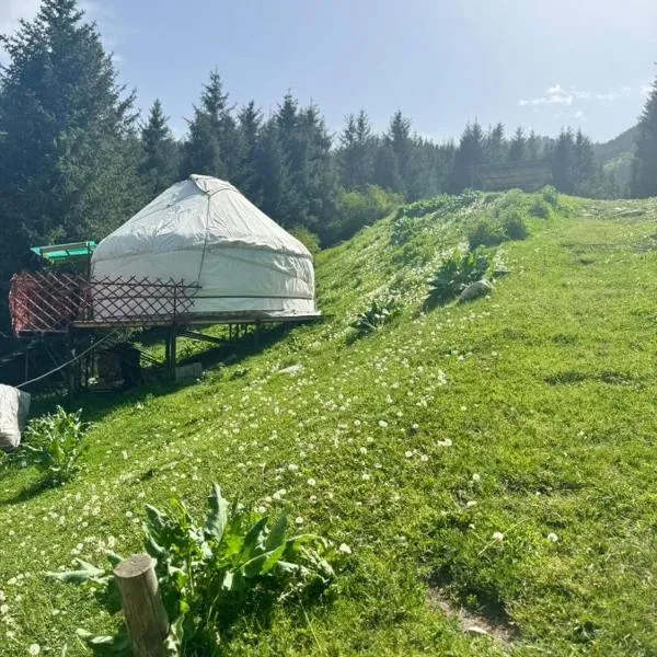 Горное гнездо и юрты位于Altynarasan,配备住宿。内部提供私人停车位。 这家青旅的部分房间享有山景。客房提供电热水壶。所有客房为客人提供冰箱。 Горное гнездо и юрты的客人可以享用单点早餐。 Karakol International距离住宿有26公里。