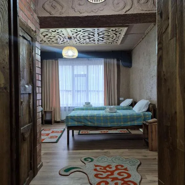 Ulukhaus位于At-Bashy,配备花园。这家旅馆提供免费WiFi和免费私人停车位。 这家旅馆的每间客房都提供衣柜、山景阳台、私人浴室、平板电视、床上用品和毛巾。客房为客人提供冰箱。 这家住宿提供单点、美式或亚洲风味早餐。
