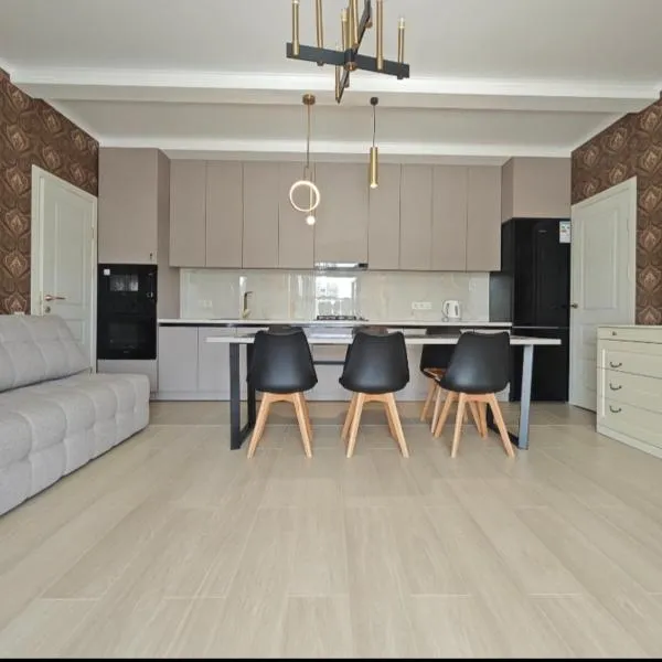 3х ком квартира на Иссык-Куле位于Chon-Sary-Oy,提供私人泳池和私人停车位。这家住宿提供免费WiFi,还拥有花园、餐厅和酒吧。 这家公寓配有2间卧室、起居室、带冰箱和电热水壶的设施齐全的小厨房以及1间带淋浴设施和吹风机的浴室。1间浴室提供拖鞋。 这家公寓提供儿童游乐区。3х ком квартира на Иссык-Куле提供自行车租赁服务。