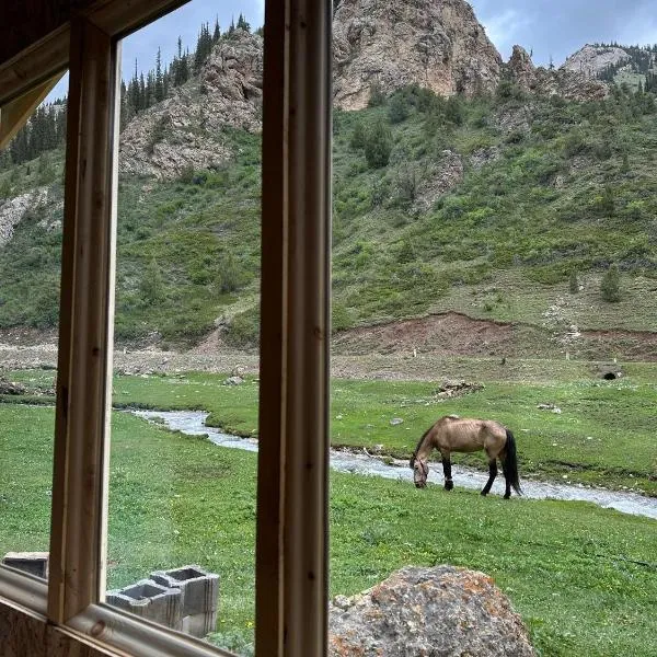 Camp Moldo pass on the road to Son Kol lake, overnight stay, meals, tea, coffee位于Jangy-Talap。内部提供私人停车位。 这家住宿提供亚洲风味、素食或清真早餐。