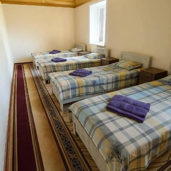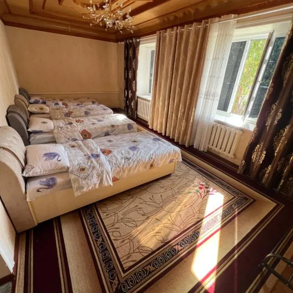 Guest House EtnoDom位于Jalal-Abad,配有花园、共用休息室、露台以及免费WiFi。住宿提供免费私人停车位和付费机场接驳服务。 这家旅馆的每间客房都拥有衣柜。Guest House EtnoDom的所有房间均提供空调和书桌。 客人可以在这家住宿玩乒乓球。该地区的热门活动有徒步。 奥什国际机场距离住宿有113公里。