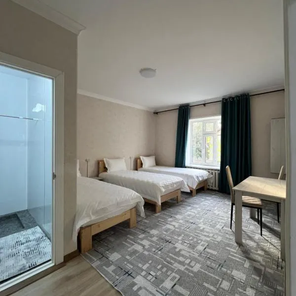 October Guesthouse坐落于Jalal-Abad,拥有花园和露台。住宿配备24小时前台、机场交通服务、共用厨房以及免费WiFi。 这家旅馆的所有客房都配备衣柜。部分客房还提供带冰箱、烤箱和炉灶的厨房。October Guesthouse的所有客房都提供床上用品和毛巾。 这家住宿供应欧陆式早餐。 奥什国际机场距离住宿有71公里。
