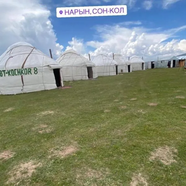 Zalkar Yurt Camp提供位于Song-Kul的住宿。内部提供私人停车位。 这家旅馆的部分客房配有共用浴室,还享有山景。 Zalkar Yurt Camp的客人可以享用单点早餐。