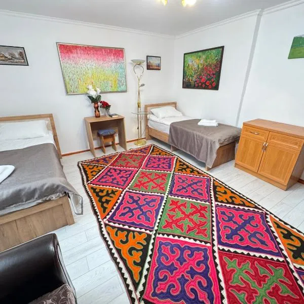 Guesthouse Kyrgyz-Uz位于纳伦,提供住宿。住宿配备班车服务和汽车租赁服务。 这家旅馆的所有客房都配有衣柜和平板电视。Guesthouse Kyrgyz-Uz的客房配有带淋浴设施和吹风机的私人浴室,也配有免费WiFi。部分客房享有山景。这家住宿的客房配有床上用品和毛巾。 伊塞克湖国际机场距离住宿有226公里。