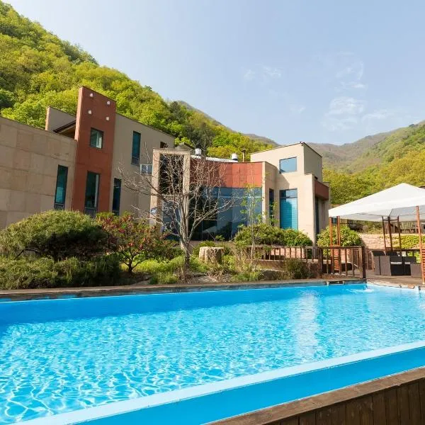 Penatess Pool Villa位于忠清北道的忠州市,提供免费WiFi和免费私人停车位。客人可以使用热水浴池。 这家度假屋为客人提供露台、休息区、卫星频道平板电视、带冰箱和微波炉的设施齐全的厨房以及带坐浴盆和免费洗浴用品的私人浴室。住宿提供炉灶和咖啡机。 客人可以在这家住宿的花园内放松身心。 Penatess Pool Villa距离Chungju City...