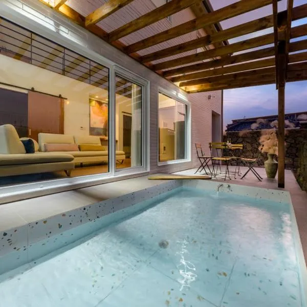 Aqua Beautique Poolvilla位于济州市,配备带免费WiFi的海景客房,配有季节性室外泳池、花园和露台。这家住宿提供私人泳池和免费私人停车位。 这家空调度假屋配有1间独立卧室、1间带免费洗浴用品和吹风机的浴室以及休息区。这家度假屋还提供带有线频道的平板电视以及1间带淋浴设施的浴室。 这家度假屋提供单点或亚洲风味早餐。