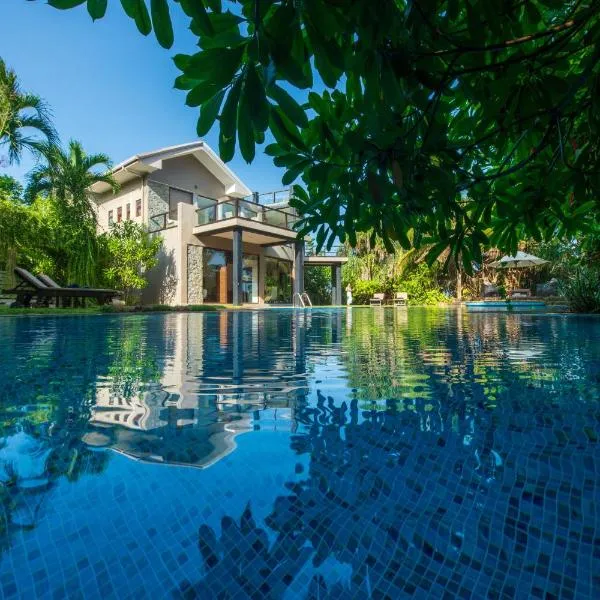 Offering an outdoor pool and a restaurant, Aavya Cove Villas are located in Balapitiya. Free WiFi access is available and rooms feature air conditioning and a patio.