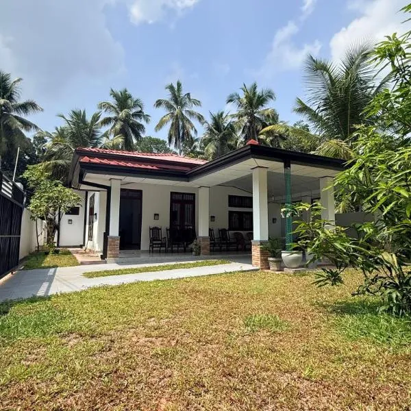 Manril Landhouse Sri Lanka位于Banduragoda,提供带免费WiFi的花园景客房,配备花园、露台和餐厅。这家度假屋配备免费私人停车位和共用厨房。 这家空调度假屋配有3间卧室、起居室、带冰箱和电热水壶的设施齐全的厨房以及2间带淋浴设施的浴室。这家度假屋也为客人提供休息区和2间浴室。 住宿供应早餐,提供欧陆式、亚洲风味和素食三种选择。