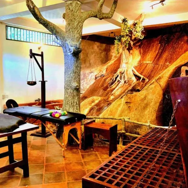 Ayurweda spa Hotel位于代尼耶耶,配有花园、露台、酒吧以及免费WiFi。内部提供私人停车位。 每间客房都提供私人浴室。部分客房提供阳台,其他客房享有山景。 这家旅馆供应全套英式/爱尔兰式早餐。 Ayurweda spa Hotel提供桑拿房。 科加拉机场距离住宿有78公里。