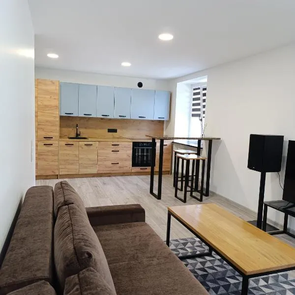 Alytus Apartament享有花园景,配备阳台和咖啡机,距离比尔托纳斯圣安东尼帕多瓦教堂约有35公里。这家公寓距离比尔托纳斯Balys Sruoga纪念碑有35公里,距离比尔托纳斯Sacral艺术博物馆有35公里。 这家公寓配有蓝光播放机,提供带冰箱、洗碗机和烤箱的厨房、带休息区和用餐区的起居室、1间卧室以及1间带坐浴盆和淋浴设施的浴室。