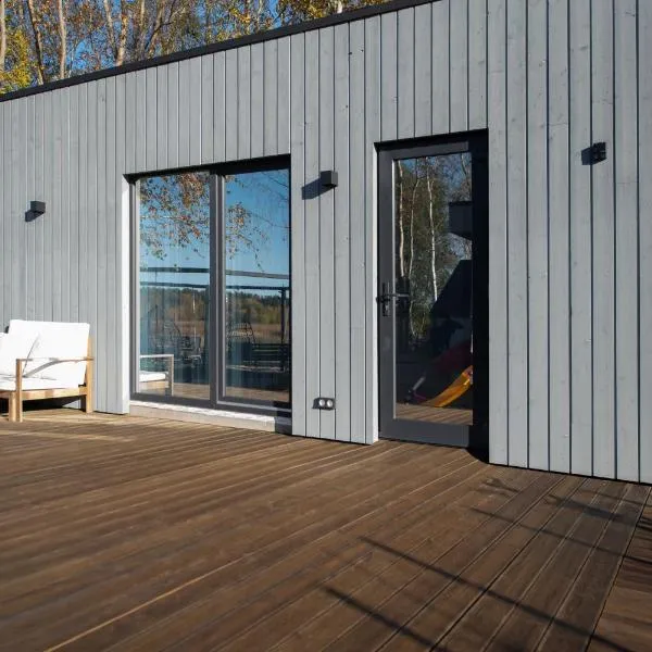 Vila Smiltynė ant ežero kranto享有湖景,提供庭院和电热水壶,距离帕兰加植物园约有42公里。这家自助式别墅配有花园、烧烤设施、免费WiFi和免费私人停车位。 这家空调别墅配有1间卧室、起居室、带冰箱和咖啡机的设施齐全的厨房以及2间带坐浴盆和淋浴设施的浴室。2间浴室配有浴缸,也提供免费洗浴用品,提供毛巾和床上用品。 这家别墅提供自行车租赁服务。客人可以在附近体验徒步。