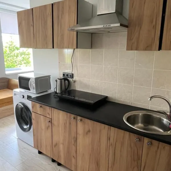 Maironis apartment - Cozy apartment in Raseiniai位于拉塞尼艾。入住这家公寓的客人可以使用免费WiFi。 这家公寓配有1间卧室、起居室、带炉灶和咖啡机的设施齐全的厨房以及1间带淋浴设施和热水浴池的浴室。1间浴室配有浴缸,也提供免费洗浴用品,提供毛巾和床上用品。 考纳斯机场距离住宿有91公里。