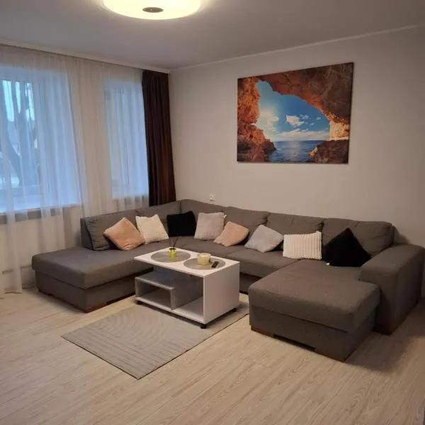 Trumpalaikė buto nuoma位于特尔希艾。这家公寓还拥有免费WiFi。 这家公寓配有阳台、2间卧室、1间浴室、设施齐全的厨房、平板电视和桑拿浴室。这家公寓也为客人提供1间浴室。 帕兰加国际机场距离住宿有85公里。