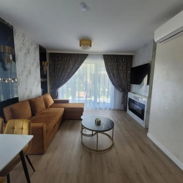 Day off apartment I Mano jūra 3位于帕兰加,提供季节性室外泳池,距离瓦纳古普海滩(Vanagupe Beach)有17分钟步行路程,距离帕兰加圣母升天堂有5.7公里,距离帕兰加雕塑公园有6.7公里。这家公寓提供免费私人停车位、共用休息室和免费WiFi。 这家公寓提供露台,享有池景,配有1间卧室、起居室、平板电视、带冰箱和炉灶的设施齐全的厨房以及1间带淋浴设施的浴室。