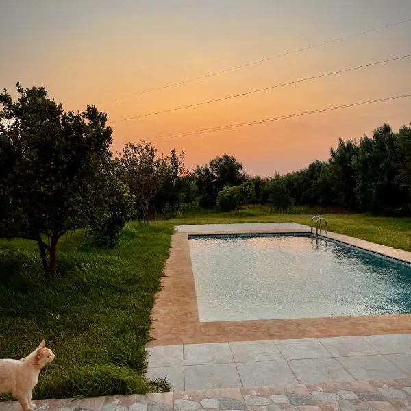 Jolie propriété de campagne calme et spacieuse位于Et Tleta Hanchene,距离莫加多尔高尔夫球场有38公里。客人可以使用土耳其浴室。这家自助式别墅配有私人泳池、花园和免费私人停车位。 这家别墅提供3间卧室、带冰箱和烤箱的小厨房、洗衣机以及3间浴室。这家别墅也拥有3间浴室。
