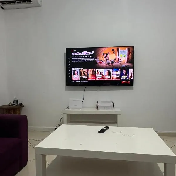 Appartement bien équipé et calme位于丹吉尔,距离丹吉尔大球场有4公里,距离丹吉尔美国公使馆有10公里,提供免费WiFi和空调。这家公寓距离古堡博物馆有11公里,距离Tanger City Mall有11公里。 这家公寓享有花园景,提供阳台,配有1间卧室、起居室、平板电视、设施齐全的厨房以及1间带热水浴池的浴室。这家公寓也提供1间浴室。