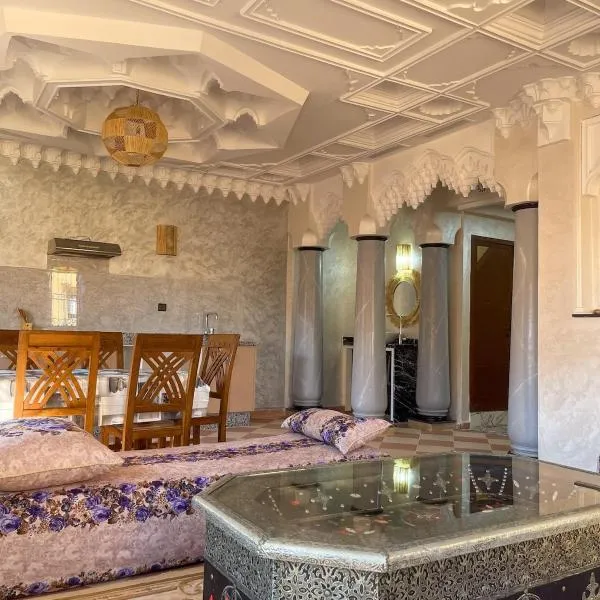 Dar lalla位于马拉喀什,距离梅纳拉花园有5.2公里,提供花园、免费WiFi、客房服务和24小时前台。这家公寓配备免费私人停车位和礼宾服务。 这家空调公寓配有2间卧室、起居室、带冰箱和咖啡机的设施齐全的厨房以及1间带坐浴盆和淋浴设施的浴室。1间浴室配有浴缸,也提供吹风机,提供毛巾和床上用品。 这家公寓的客人可以享用单点或清真早餐。
