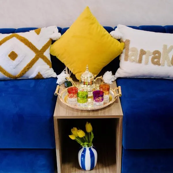 Appartement a 5 min de l aeroport de marrakech位于马拉喀什,距离梅纳拉花园有5.8公里,距离德吉玛广场有6.8公里,距离库图比亚清真寺有7.1公里。这家住宿的客人可以使用阳台、免费私人停车位和免费WiFi。 这家空调公寓配有2间独立卧室、、1间带免费洗浴用品和吹风机的浴室以及起居室。这家公寓也提供带冰箱的厨房以及1间浴室。