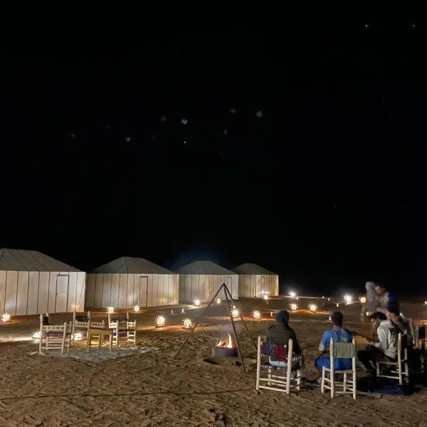 Merzouga Luxury Sahara Camps位于梅尔祖卡,提供花园。住宿配有露台。客人可以使用免费WiFi和免费私人停车位。 这家酒店的所有房间均配备休息区。Merzouga Luxury Sahara Camps的部分客房配有山景。所有客房都配有带淋浴设施的私人浴室。这家住宿的所有客房都拥有床上用品和毛巾。 早餐提供自助、素食或全素食三种选择。Merzouga Luxury...