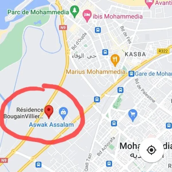 Immobilier minan坐落于穆罕默迪耶,距离安发广场生活度假村有28公里,距离摩洛哥购物中心有33公里,距离穆罕默迪耶皇家高尔夫俱乐部有2.8公里。这家住宿距离哈桑二世清真寺有25公里,配备露台和免费私人停车位。 这家公寓也配备1间浴室。 这家公寓距离卡萨布兰卡沃亚格鲁斯火车站有22公里,距离Central Market of Casablanca有23公里。