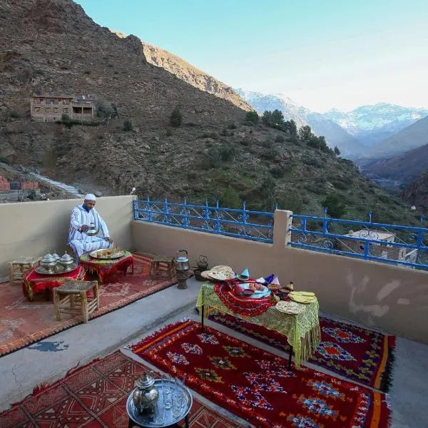 Toubkal Garden公寓位于马拉喀什-萨菲(Marrakech-Safi)地区,距离伊姆利尔(Imlil)有2.5公里,提供阳光露台、滑雪至门口的通道、内部餐厅、免费WiFi和免费内部私人停车场、 部分客房还配有便利的休息区和露台或阳台。客房配有带浴缸或淋浴设施的私人浴室,为了客人的舒适,客房还提供拖鞋和吹风机。