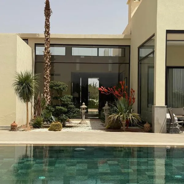 Villa rouge avec piscine et golf位于马拉喀什,提供带免费WiFi的山景客房,配备户外游泳池、花园和露台。这家住宿提供私人泳池和免费私人停车位。 这家空调别墅配有3间卧室、起居室、带冰箱和咖啡机的设施齐全的厨房以及3间带坐浴盆和免费洗浴用品的浴室。3间浴室配有浴缸,也拥有浴袍,提供毛巾和床上用品。 这家别墅的客人可以享用自助早餐。