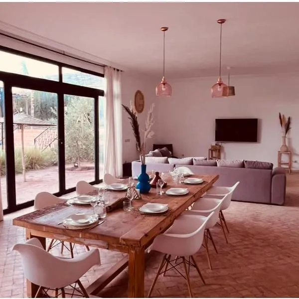 Motia's farm位于马拉喀什,配备带免费WiFi的山景客房,配有户外游泳池、花园和露台。这家住宿提供私人泳池和免费私人停车位。 这家空调别墅配有2间卧室、起居室、带冰箱和咖啡机的设施齐全的厨房以及3间带淋浴设施和免费洗浴用品的浴室。3间浴室配有浴缸,也配有吹风机,提供毛巾和床上用品。 这家别墅距离巴伊亚宫有36公里,距离地毯博物馆有36公里。马拉喀什梅内拉机场距离住宿有41公里。
