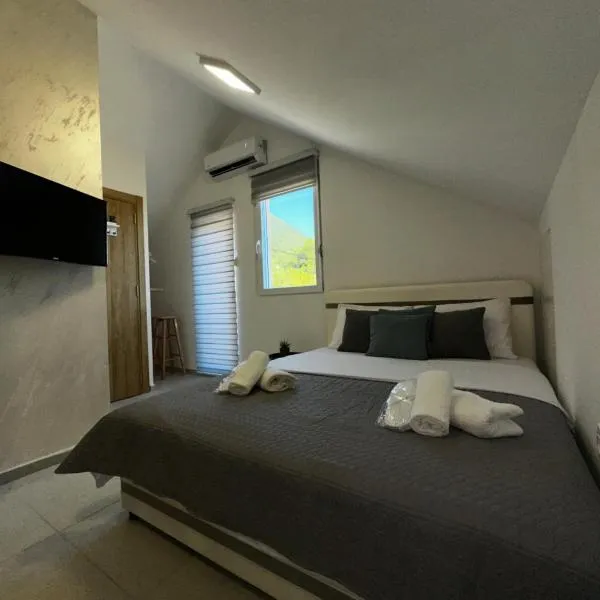Milovic Apartman位于Kotor County的科托尔,配有阳台,享有山景。这家住宿距离科托尔钟楼有10公里,提供露台和免费私人停车位。 这家空调公寓配有2间独立卧室、起居室、带冰箱和洗碗机的设施齐全的厨房以及1间浴室。1间浴室配有坐浴盆,也提供免费洗浴用品,提供毛巾和床上用品。 这家公寓距离海之门-主入口有10公里,距离圣萨瓦教堂有11公里。蒂瓦特机场距离住宿有5公里。