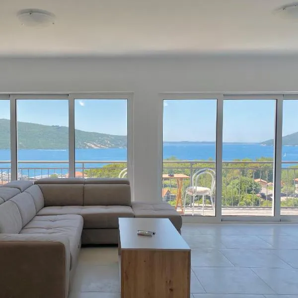 SeaView Zelenika坐落于赫尔采格诺维,距离拉洛维娜海滩(Lalovina Beach)有15分钟步行路程,距离新海尔采格钟楼有7.3公里,提供免费WiFi、花园和空调。这家住宿享有海景和山景,距离海城堡有7.7公里。 这家公寓提供露台,享有市景,拥有2间卧室、起居室、平板电视、带冰箱和烤箱的设施齐全的厨房以及1间带淋浴设施的浴室。1间浴室配有浴缸,也配备吹风机,提供毛巾和床上用品。