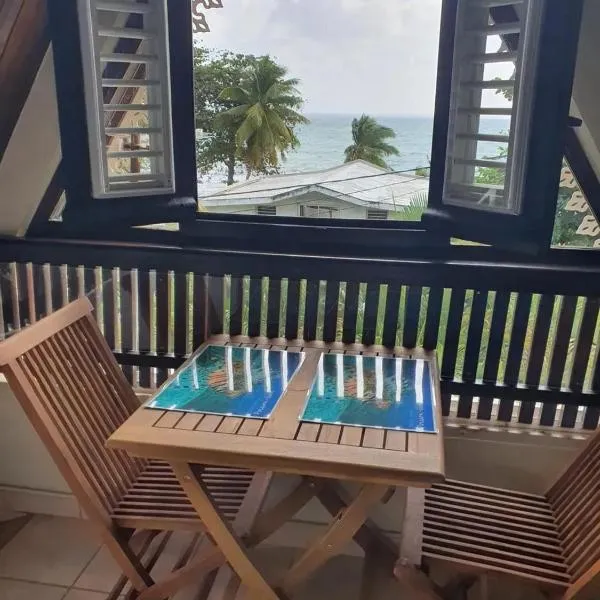 Suite Caraïbes, vue mer位于Gondeau,配备带免费WiFi的海景客房,配备私家海滩和露台。这家公寓配有免费私人停车位。客人可以在周边地区体验徒步和浮潜等活动。 这家空调公寓配有1间卧室、起居室、带冰箱和咖啡机的设施齐全的厨房以及1间带淋浴设施和吹风机的浴室。这家公寓也配备休息区和1间浴室。 马提尼克艾梅·塞泽尔国际机场距离住宿有9公里。