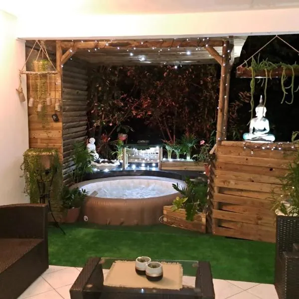 Astral Suite, Love Room, Jacuzzi, Distance to Beach位于圣吕斯。这家空调住宿距离加德斯军团东海滩(Corps de Garde Est Beach)有不到一公里,为客人提供免费WiFi,内部提供私人停车位。 这家公寓配有露台、1间卧室、1间浴室、设施齐全的厨房、平板电视和热水浴池。这家公寓也为客人提供1间浴室。 Astral Suite, Love...