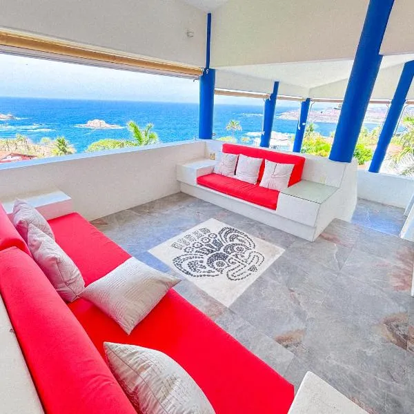 Beachfront unit with ocean view, pool, fiber optic位于Bahías de Huatulco,距离瓦图尔科海滩(Huatulco Beach)仅有4分钟步行路程,提供海滨住宿、户外游泳池、花园、私家海滩和免费WiFi。这家公寓配备免费私人停车位。客人可以在周边地区体验浮潜、划独木舟和网球等活动。