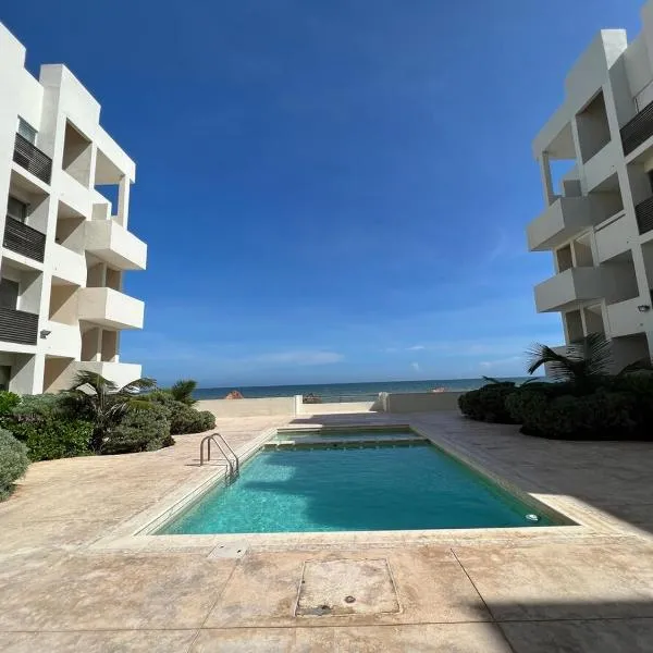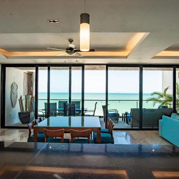 HERMOSO DEPATAMENTO EN PLAYA PROGRESO位于希克苏鲁伯,靠近普罗格雷索海滩(Progreso Beach),距离玛雅世界博物馆有36公里,配备海景阳台、户外游泳池和私家海滩。这家公寓配备免费私人停车位、24小时前台和免费WiFi。 这家公寓配备3间卧室、4间浴室、床上用品、毛巾、带有线频道的平板电视、用餐区、设施齐全的厨房以及市景露台。