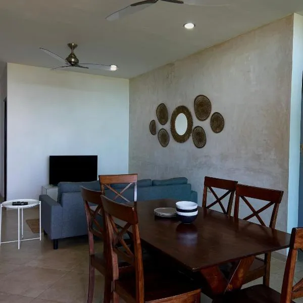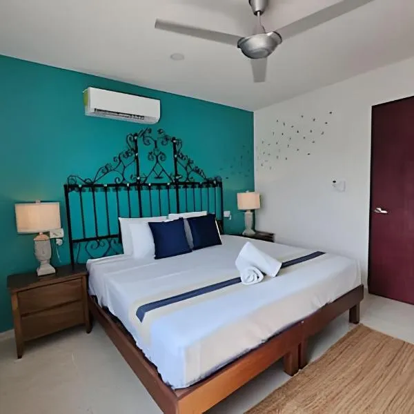 Condo Chicxulub a una cuadra del Mar位于希克苏鲁伯,提供私人泳池。这家公寓距离二十一世纪会议中心有34公里,距离梅里达大教堂有42公里。 这家空调公寓配有3间卧室、厨房和3间浴室。这家公寓也为客人提供休息区和3间浴室。 这家公寓距离普罗格雷索海滩(Progreso Beach)有1分钟步行路程,距离玛雅世界博物馆有34公里。梅里达国际机场距离住宿有45公里。