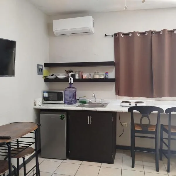 LiV109 Norte Depa 8 Cd Obregon位于索诺拉州的奥夫雷贡城,配有庭院。这家公寓配备花园和免费WiFi。 这家公寓配有1间卧室、1间浴室、床上用品、毛巾、平板电视、用餐区、设施齐全的小厨房以及花园景露台。这家空调公寓还提供1间带淋浴设施的浴室。