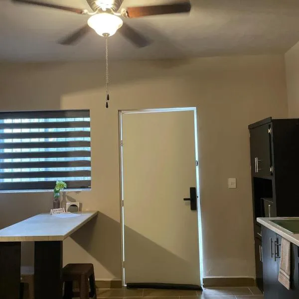 LiV109 Norte Depa 4 Cd Obregon坐落于索诺拉州的奥夫雷贡城,拥有花园。这家公寓配备带免费WiFi的空调客房。 这家公寓配有1间卧室、1间浴室、床上用品、毛巾、平板电视、设施齐全的小厨房以及花园景庭院。住宿配有1间带淋浴设施的浴室,配备免费洗浴用品和吹风机。 奥布雷冈城机场距离住宿有16公里。