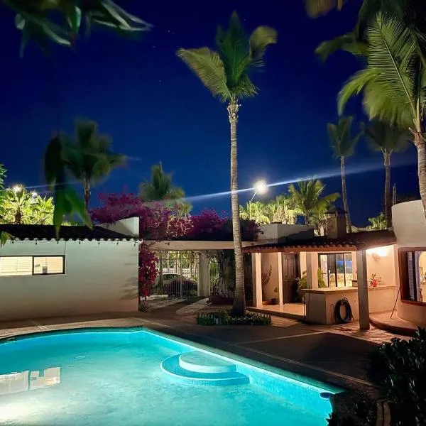 Casa Pax - Hab El Rincón del Pescador Frente al Mar坐落于拉巴斯,距离孔查利托海滩(Conchalito Beach)有不到几步路,距离拉波萨达海滩(La Posada Beach)有4分钟步行路程,提供免费WiFi、空调、户外游泳池和花园。内部提供私人停车位。 这家家庭式住宿配备毛巾和床上用品。