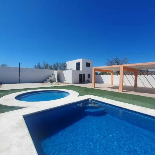 Tu casa con pérgola en La Paz BCS坐落于拉巴斯,提供露台。内部提供私人停车位。 这家空调度假屋配有2间独立卧室、起居室、带冰箱和烤箱的设施齐全的厨房以及1间浴室。这家度假屋也配备休息区和1间浴室。 曼努埃尔·马奎兹·德莱昂国际机场距离住宿有22公里。