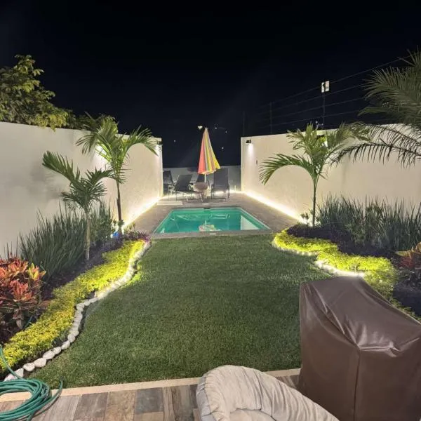 Sayaná House坐落于特米斯科,提供私人泳池和免费WiFi。这家住宿距离罗伯特布拉迪博物馆有13公里,配备露台和免费私人停车位。 这家度假屋配有1间卧室、厨房和2间浴室。这家度假屋也配有2间浴室。 这家度假屋距离霍奇卡尔科考古遗址区有15公里,距离莫雷洛斯世贸中心有17公里。墨西哥城国际机场距离住宿有96公里。