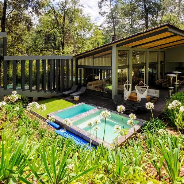 Bosque de Avandaro坐落于巴耶德布拉沃,距离卡斯卡达斯诺威亚有3.9公里,配备户外游泳池、免费私人停车位、健身中心和花园。这家住宿提供家庭间和露台。这家住宿的部分房间拥有山景阳台。 部分客房还享有带冰箱和微波炉的小厨房。 阿道弗·洛佩兹·马特奥斯机场距离住宿有83公里。