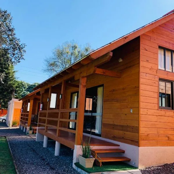 Cabañas Tr'eje位于巴耶德布拉沃,配有全年开放的室外泳池,配备免费WiFi,还为驱车前来的客人提供免费私人停车位。 部分房间拥有露台和/或池景或湖景阳台。 这家小木屋距离卡斯卡达斯诺威亚有5.4公里。阿道弗·洛佩兹·马特奥斯机场距离住宿有80公里。
