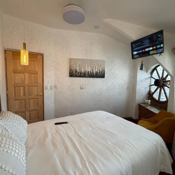 Hotel Paraje Casa Blanca坐落于San Agustín Etla,距离阿尔万山有20公里,配备花园、免费私人停车位、餐厅和酒吧。这家经济型酒店提供客房服务、24小时前台和免费WiFi。客人可以在小吃吧享用饮品。 这家酒店的每间客房都配有衣柜、床上用品和花园景庭院。客房拥有咖啡机以及带浴缸或淋浴设施和免费洗浴用品的私人浴室。部分客房还配备配备带冰箱的小厨房。Hotel...