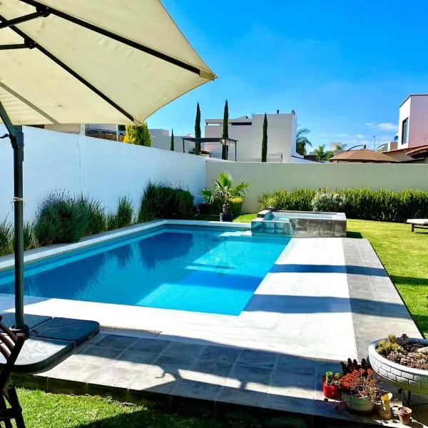 Casa Mexicana con Alberca Techada y Jardín坐落于特基斯基亚潘,配备带阳台和免费WiFi的自助式住宿。这家自助式度假屋拥有私人泳池、花园和免费私人停车位。 这家度假屋拥有4间卧室以及2间浴室,配有带卫星频道的平板电视。这家度假屋配备花园景露台,也拥有厨房和2间浴室。 这家度假屋距离伯纳尔巨石有27公里。
