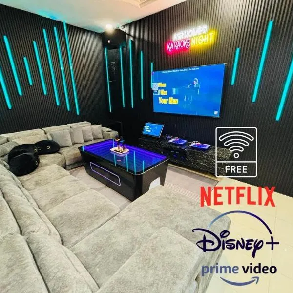 Kulai Neon Bliss Villa位于古来,提供带免费WiFi的池景客房,配备花园和露台。这家度假屋还配有私人泳池。 这家空调度假屋配有3间卧室、起居室、带冰箱和电热水壶的设施齐全的厨房以及2间带坐浴盆和浴缸或淋浴设施的浴室。这家度假屋还配备休息区、洗衣机以及2间带吹风机的浴室。 客人可以使用这家度假屋的室内泳池。