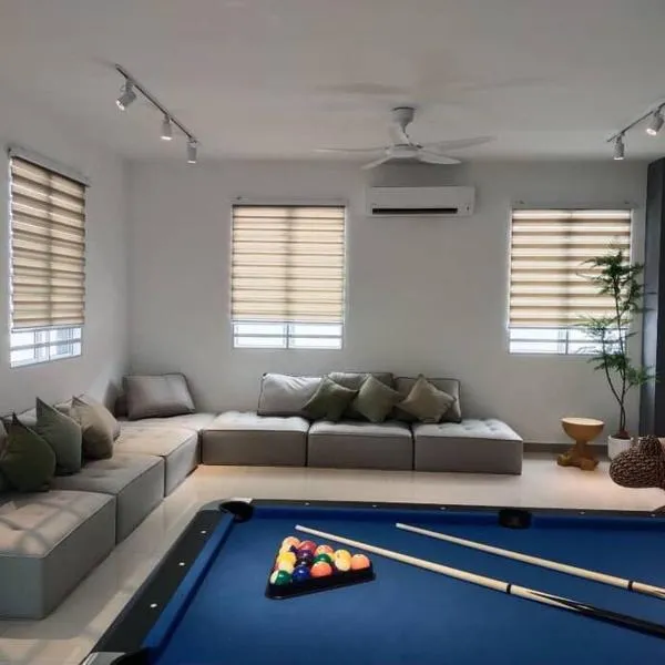 11pax5br Modern 5mins Ipoh Town wPoolTable位于怡保,距离永旺梦乐城怡保站18购物中心有3.8公里,距离Ipoh Parade购物中心有5公里,距离永旺金塔城购物中心有8.2公里。这家住宿的客人可以使用阳台、免费私人停车位和免费WiFi。 这家空调公寓配有5间独立卧室、带冰箱和炉灶的设施齐全的厨房以及2间浴室。这家公寓还提供平板电视以及2间带吹风机的浴室。